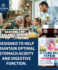 Formulated with natural digestive enzymes and high-potency Pepsin to help restore the acidic environment your stomach needs to break down protein and absorb key nutrients. It's targeted support to help you feel lighter, more energized, and more comfortable after every meal.