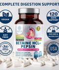 Each capsule delivers 650 mg Betaine HCl paired with 40 mg of active Pepsin (10,000 NF u/g) - a powerful duo that works to break down protein and support smooth, comfortable digestion after every meal.