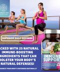 Featuring 25 powerful, plant-based ingredients, our Immune Support is made in the USA in a GMP-certified facility. Non-GMO and natural, it’s wellness you can trust daily.