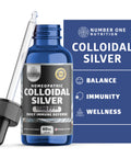 Experience the power of pure, simple wellness with Number One Nutrition’s Colloidal Silver. Made with high-quality silver particles in purified water, it’s a clean, effortless way to support your daily health.