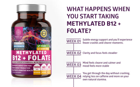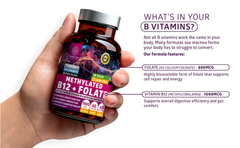Methylated B12 and folate are generally considered safe with few reported side effects. Some people may experience mild digestive upset or headaches. When taken as directed, these vitamins are safe for long-term use, but consult your healthcare provider if you have medical conditions or are pregnant or nursing.