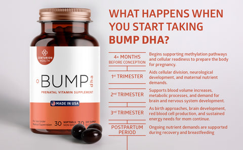 Bump DHA is designed for expecting and planning-to-be moms who want gentle and complete prenatal support. It’s ideal for anyone looking to support healthy fetal brain and eye development, maintain maternal wellness, and ensure their body gets bioavailable folate, DHA, and essential vitamins and minerals throughout pregnancy.